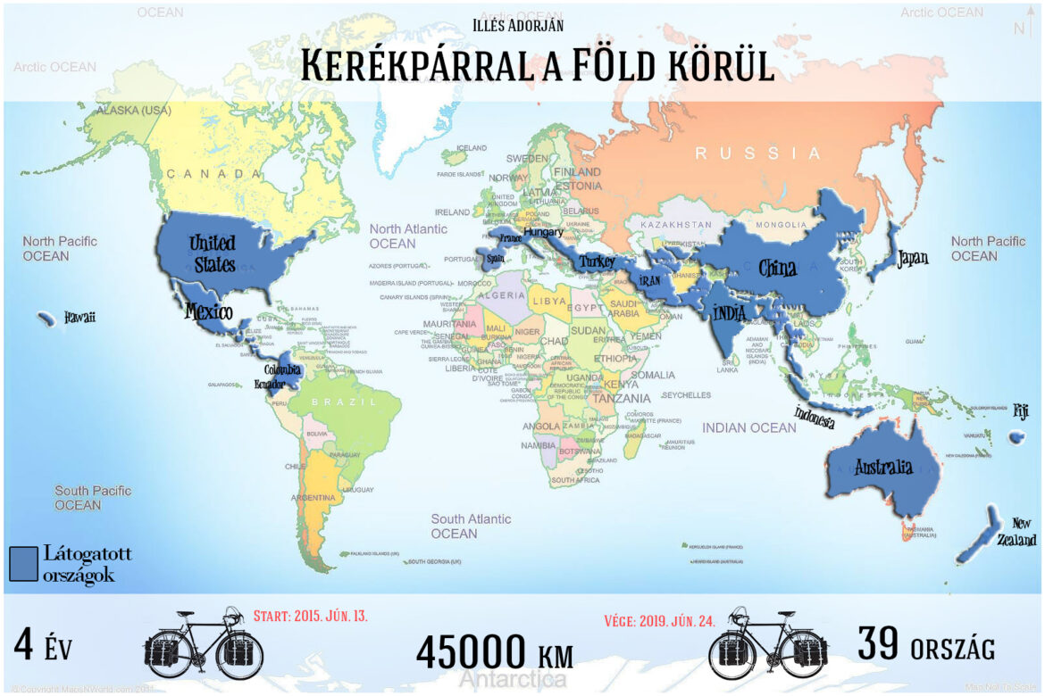 Egy történet, ami túlmutat a kilométereken és a térképen. Illés Adorján 1473 nap alatt 39 országon és 46 ezer kilométeren keresztül tekerte át magát, aztán visszatért, hogy elmesélje: az élet sokkal több lehetőséget tartogat, mint amit a mókuskerék kínál.